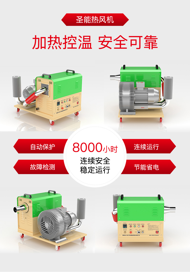 本产品风量大、风压高、控制精确,适用于各行业的加热、老化、固化、熔接、干燥、升温及土建筑工上的水泥养护等工序使用,是热风输送炉、干燥炉、烘箱、烘房、烘道、印刷PS干燥、铸造行业砂锅干燥、热风收缩机械、封装机械、容器内部干燥/升温、管道送风、印刷制品油墨瞬间干燥、橡胶制品加热升温、材料保温等行业最佳产品,有效的提高产品质量及效率,是现代工业热源升级换代的首选加热产品。
