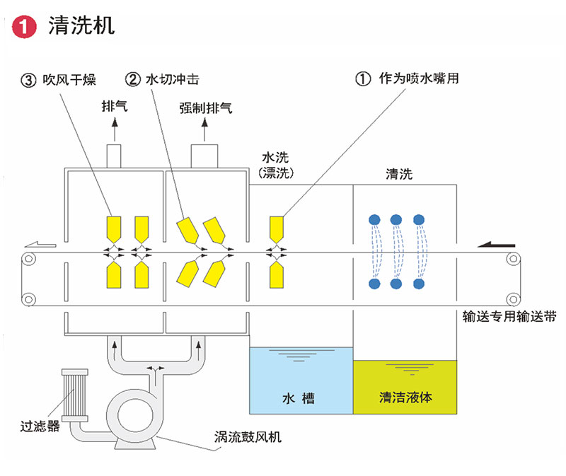⑧经过加固处理,风刀可成为水刀(出风口不可调),喷出均匀水帘,既可用作清洗。